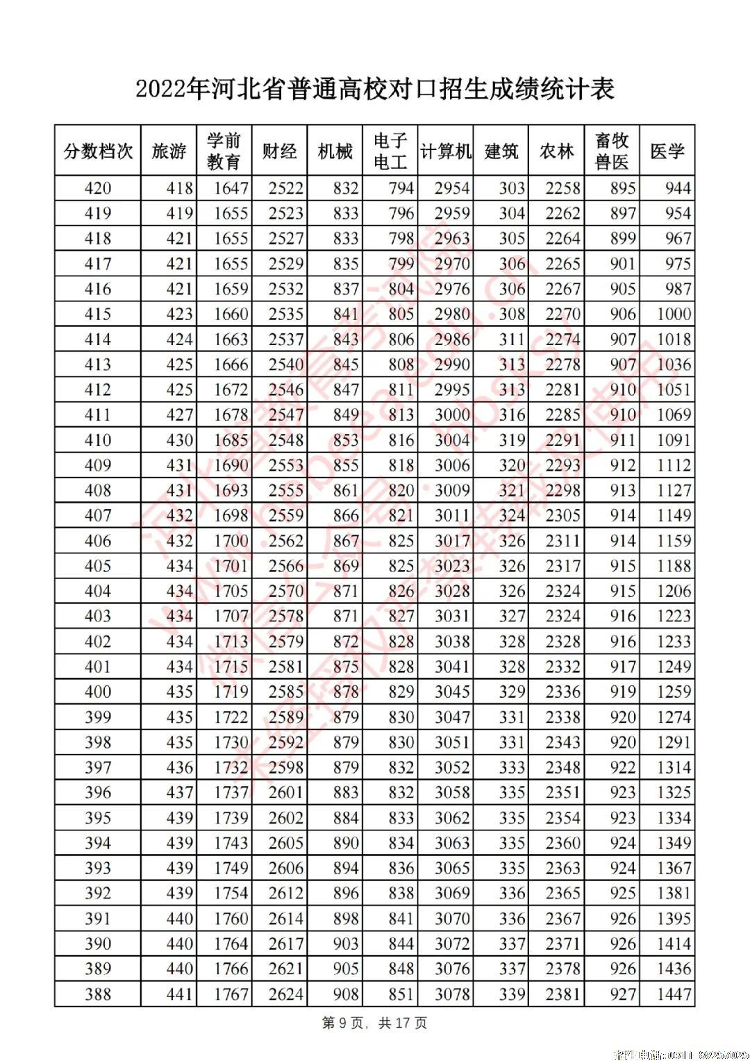 河北省2022年普通高校对口高考招生成绩一分一档表公布(建议收藏)