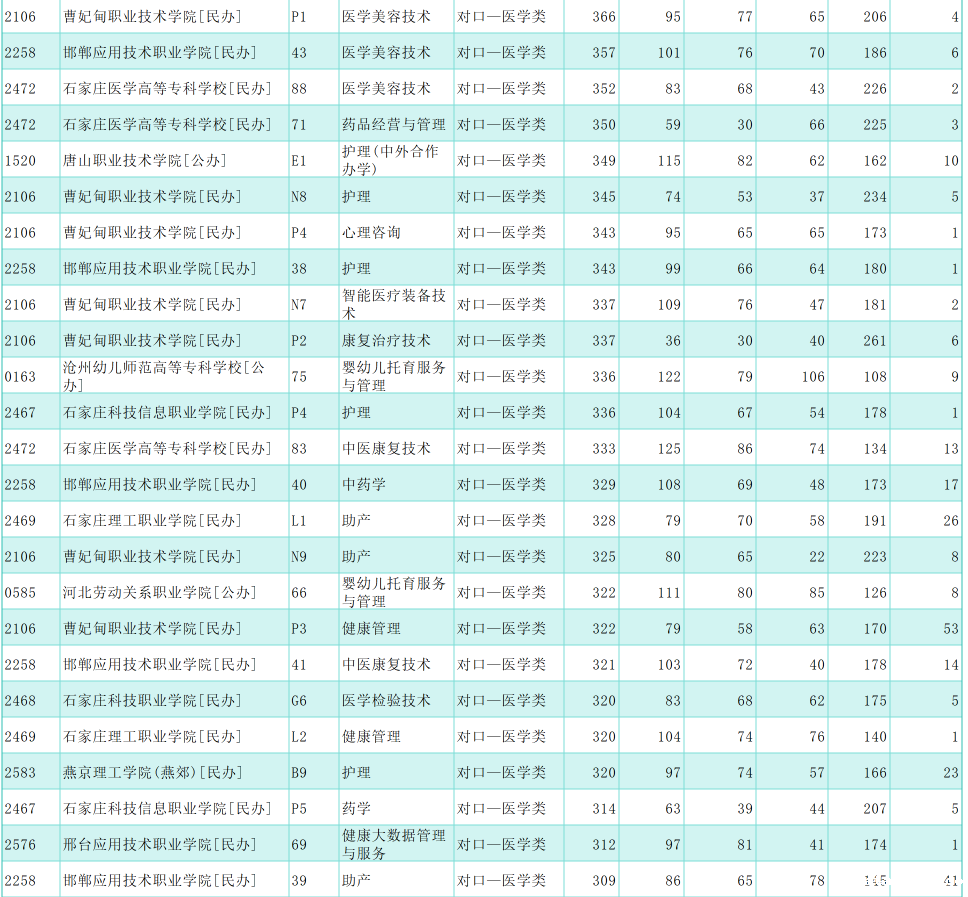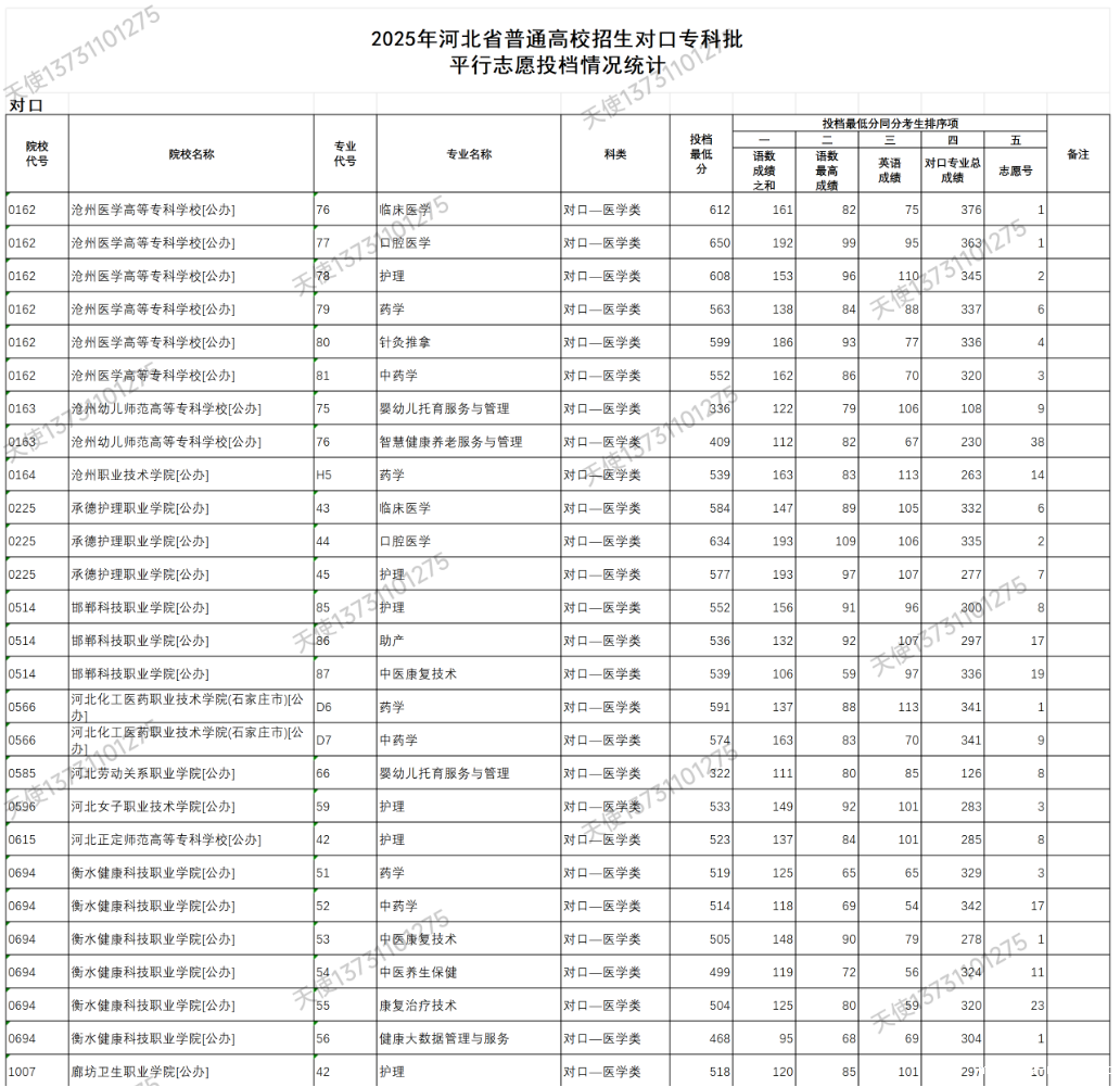 2025年河北省对口高考医学类专科批平行志愿投档线公布
